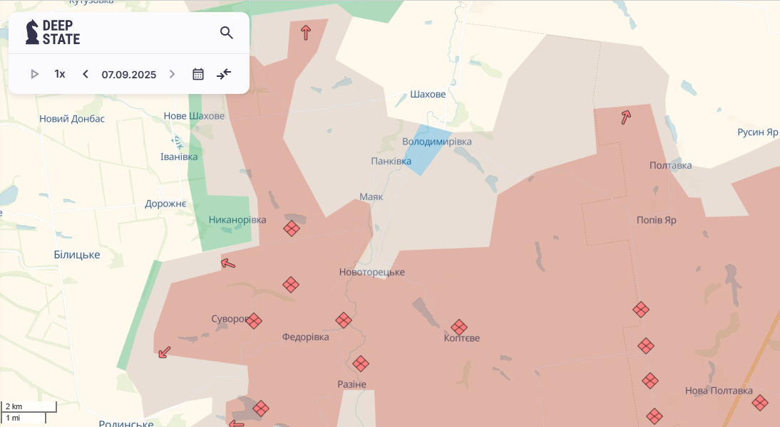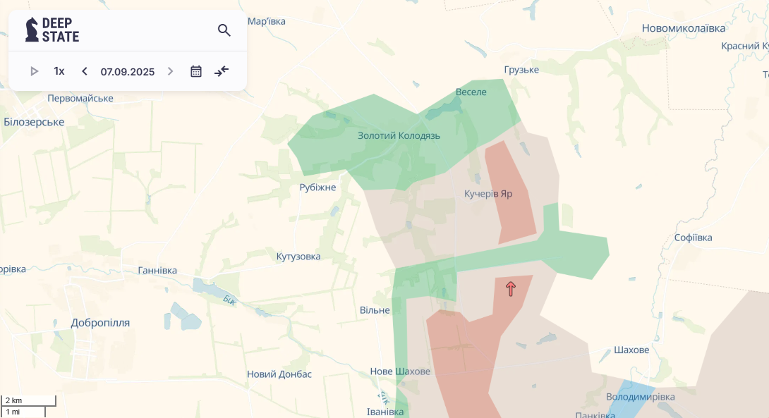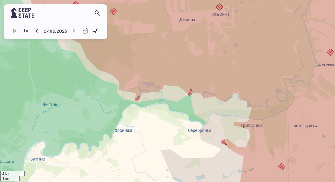 Ворог натомість мав часткові успіхи у Серебрянському лісництві, де йому вдалося просунутися. Про зміни у мапі бойових дій повідомили аналітики проєкту DeepState увечері 7 вересня.