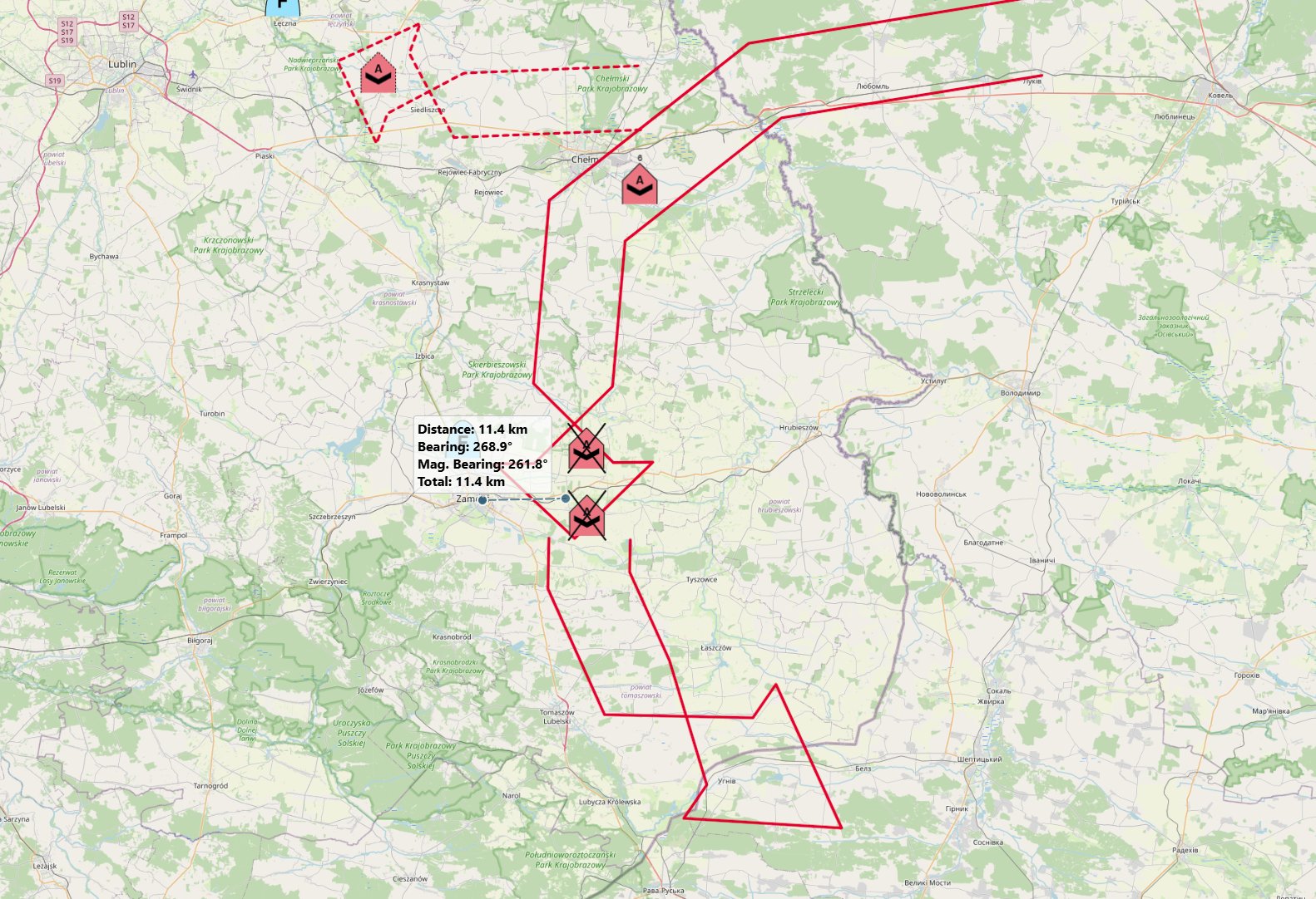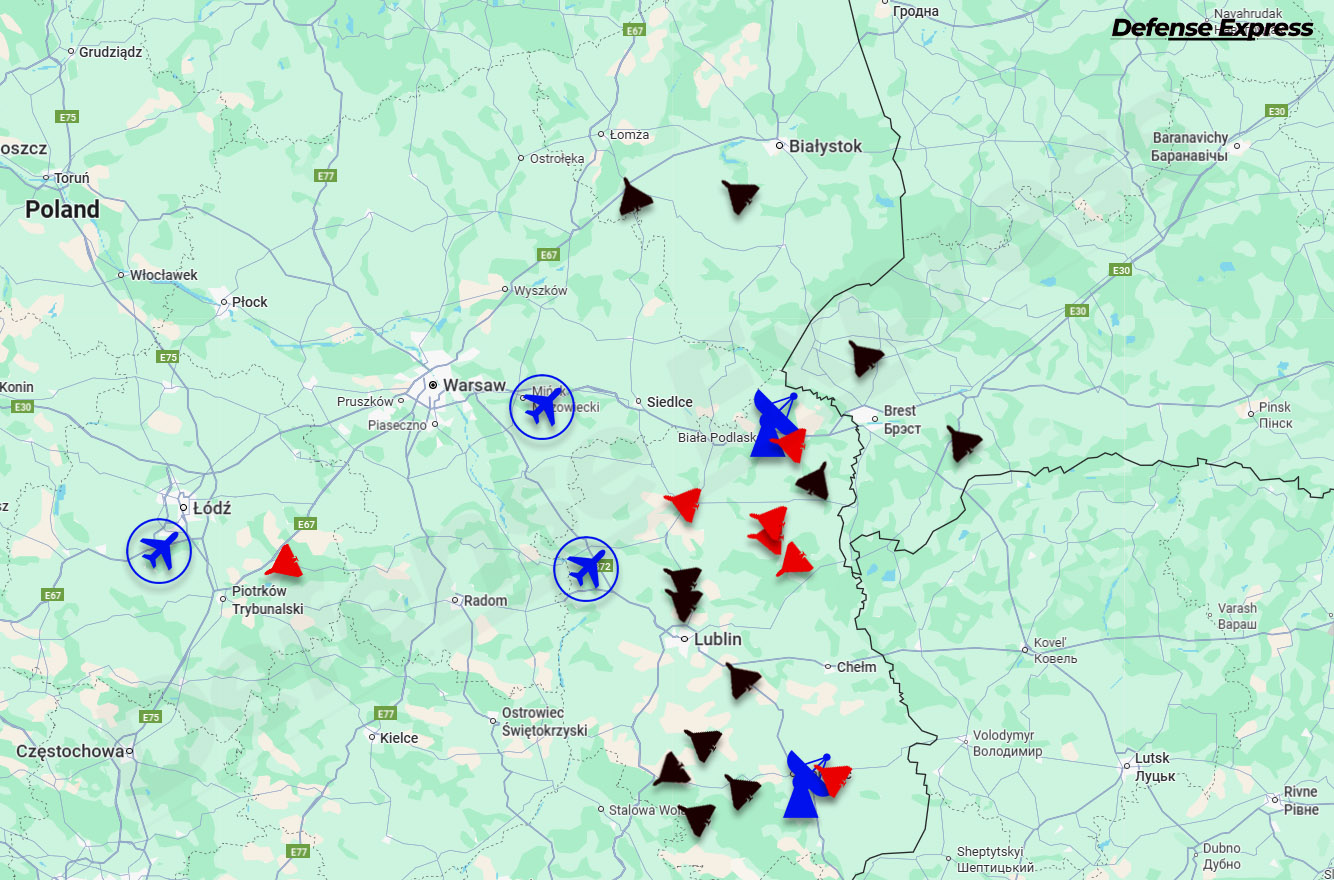 "Маршрути російських дронів дивним чином "збіглись" з основними шляхами у бік Варшави та Любліна, а також двох з трьох постів дальнього радіолокаційного дозору польських повітряних сил на східному кордоні", — зауважили вони.