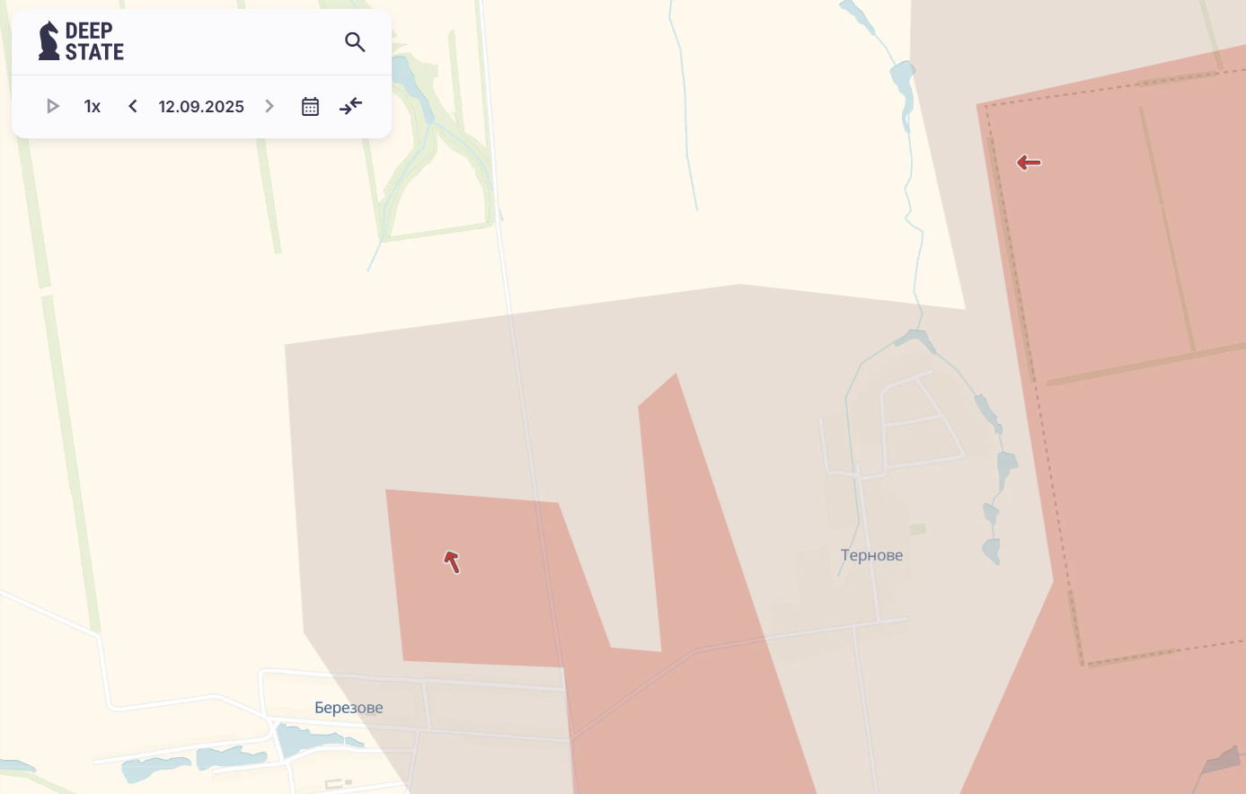 За інформацією DeepState, російські окупаційні війська майже оточили село Тернове й наразі населений пункт знаходиться у "сірій зоні".