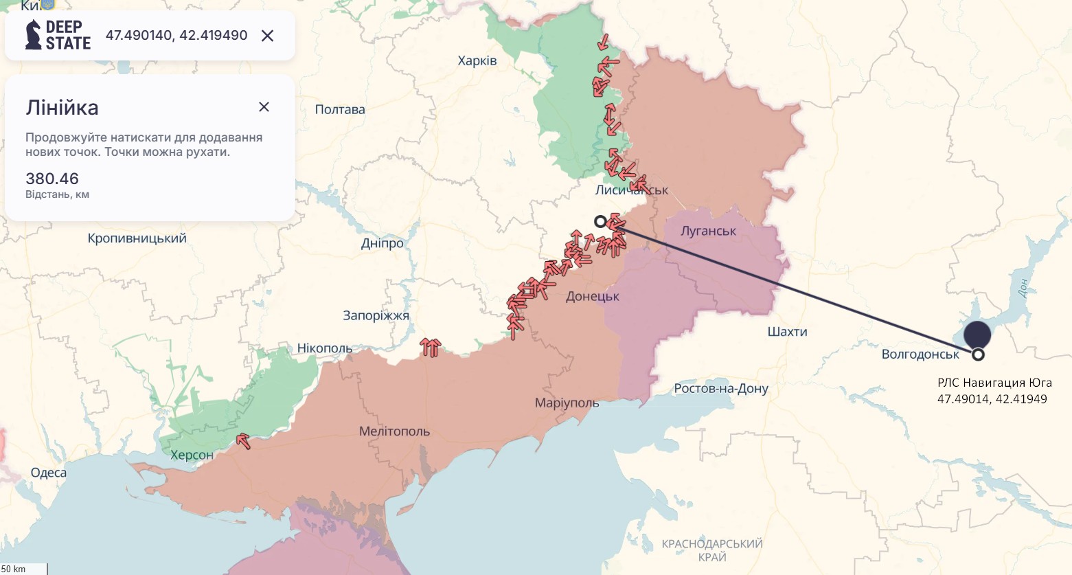Від РЛК-1 "Навигация Юга" до України понад 380 км