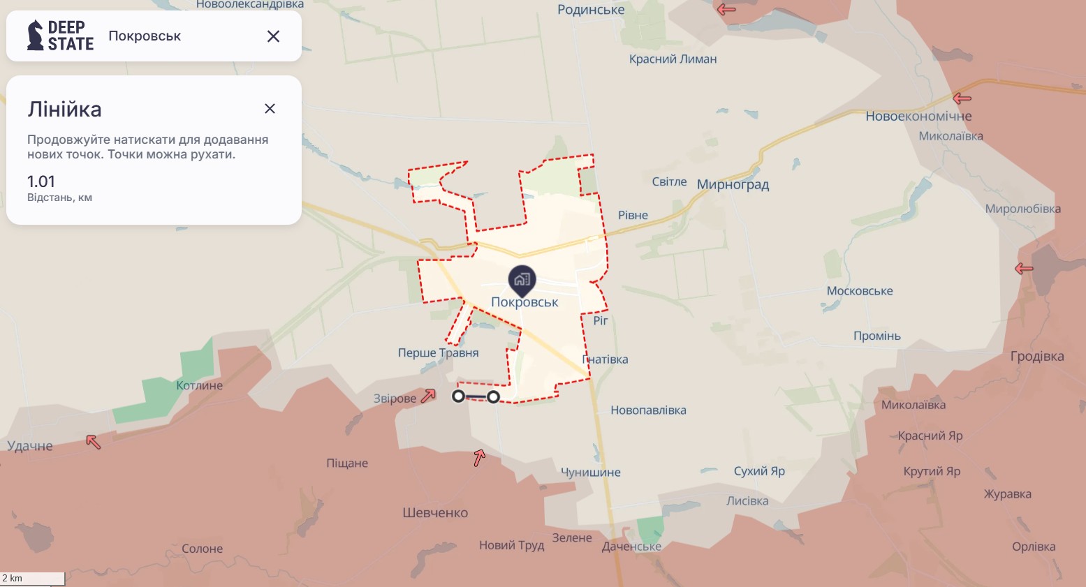 Збройні сили Російської Федерації пройшли 1 км у передмісті Покровська й частина вулиці на південній околиці опинилась у сірій зоні. Крім того, росіяни просунулись на західному флангу біля Новопавлівки у Дніпропетровській області та можуть обійти населений пункт.
