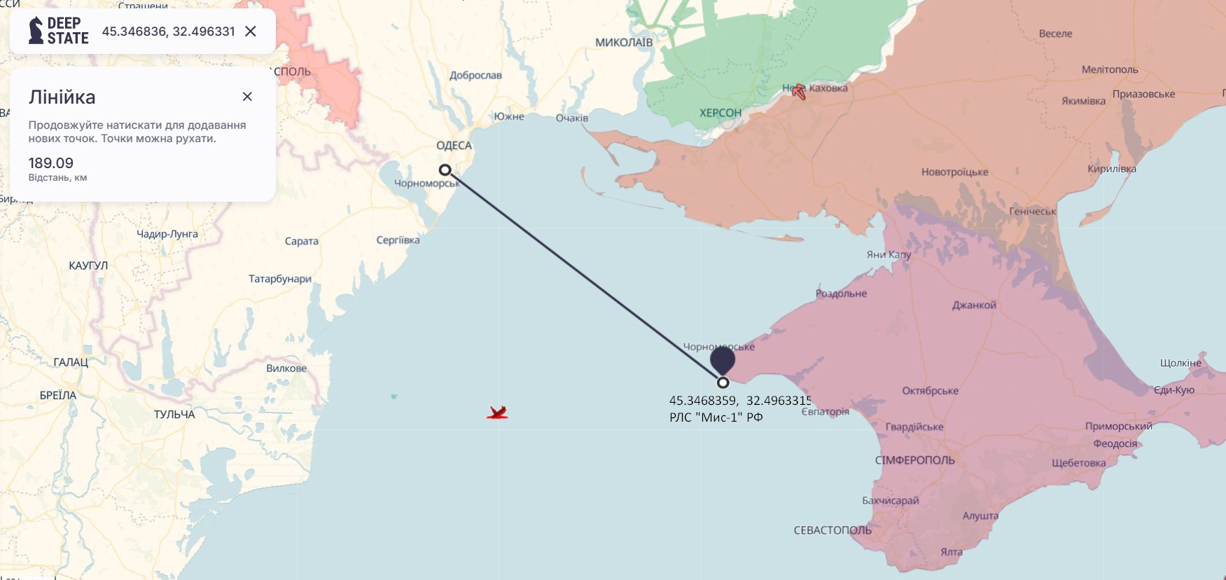 Відстань до точки удару ГУР по РЛС в Криму 25 вересня