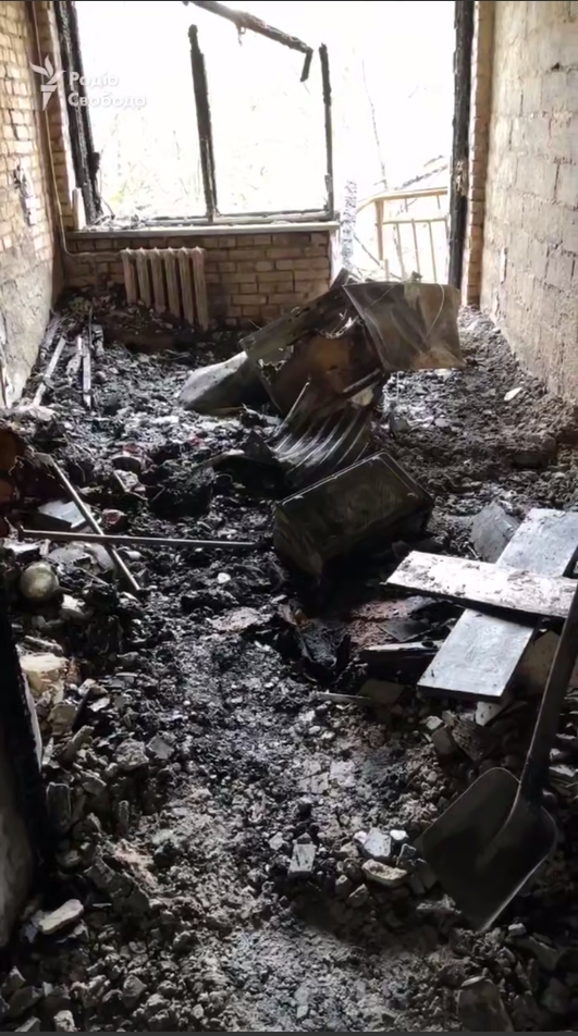 Усередині інституту вогонь знищив обладнання та меблі, залишивши після себе лише обгорілі стіни.