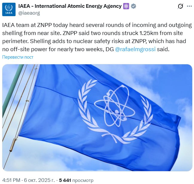 Інформація про обстріли з'явилася в офіційному акаунті МАГАТЕ в X.