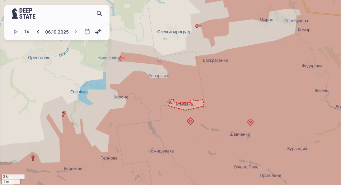 Ворог окупував село Маліївку, що розташоване у Синельківському районі Дніпропетровської області. Про це повідомили аналітики проєкту DeepState у зведенні увечері 6 жовтня.