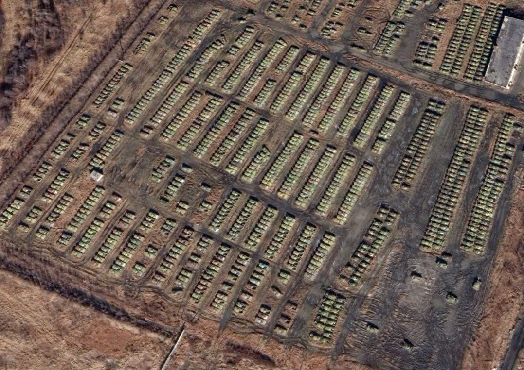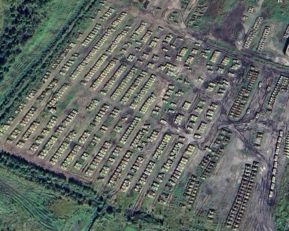 Також дослідники показали супутникові фото, на яких видно величезну кількість техніки, що стоїть на полігонах, мабуть, чекаючи ремонту.