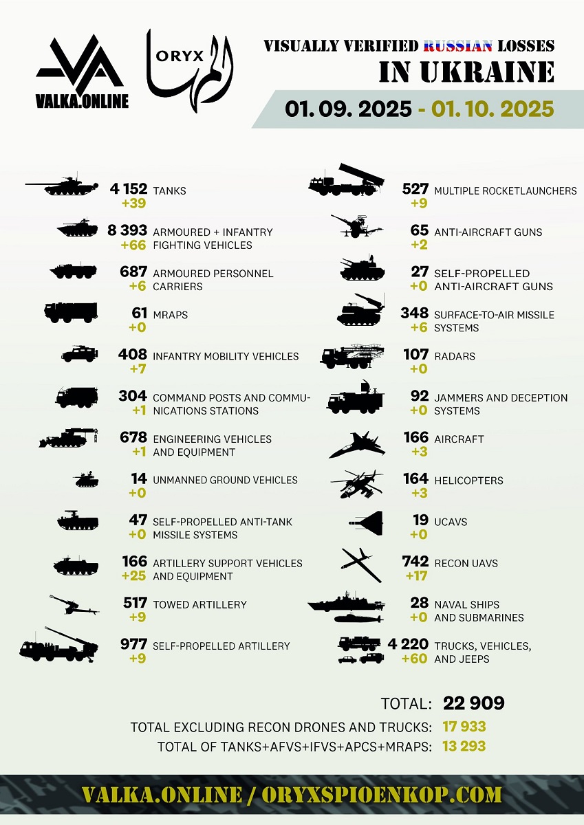 А OSINT-дослідник Якуб Яновський оновив наочний графік втрат російської техніки.