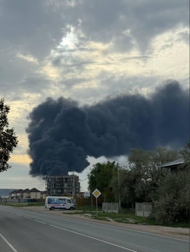 Він зазначає, що пожежа триває досі, теплові сигнатури фіксуються в районі чотирьох резервуарів, а хмара диму розтягнулася на 26 кілометрів.