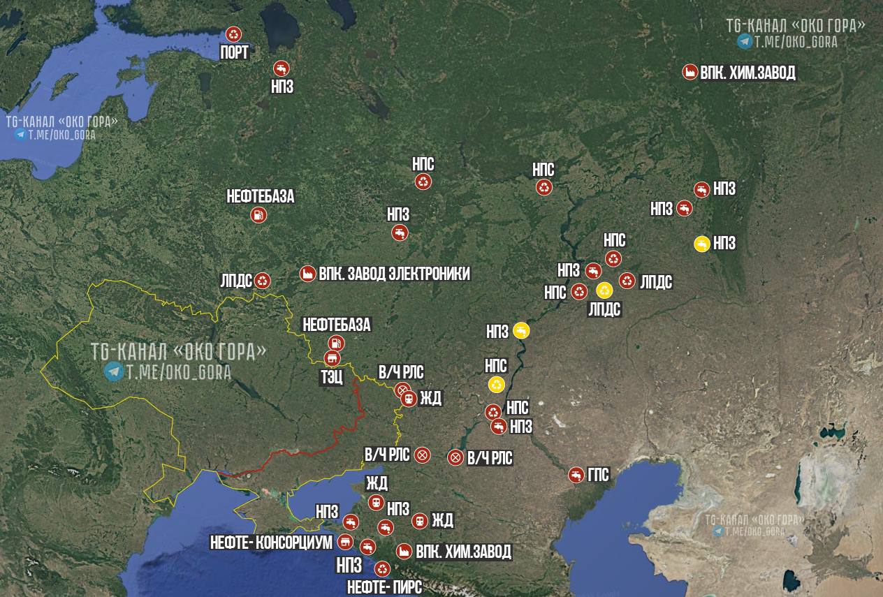 Ще один удар — наліт дронів на відстань понад 1 500 км. Росіяни скаржились на появу дронів аж під Оренбургом (кордон з Казахстаном) та у Пермському краї. Перша ціль — Орський НПЗ, друга — завод "Азот", який випускає речовини для вибухівки. У небі помітили безпілотник, за обрисами схожий на БпЛА "Лютий", зауважили аналітики.
