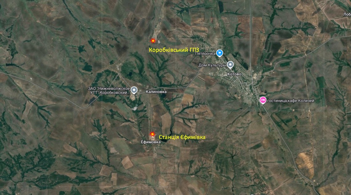 Удари по РФ - де розташовані Коробківський газопереробний завод та станція Єфимівка