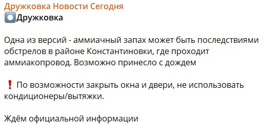 За його словами, запах аміаку відчувається сьогодні навіть у Дружківці, Слов'янську та Краматорську.
