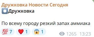 Про різкий запах аміаку в повітрі жителі Дружківки почали писати після першої години дня.