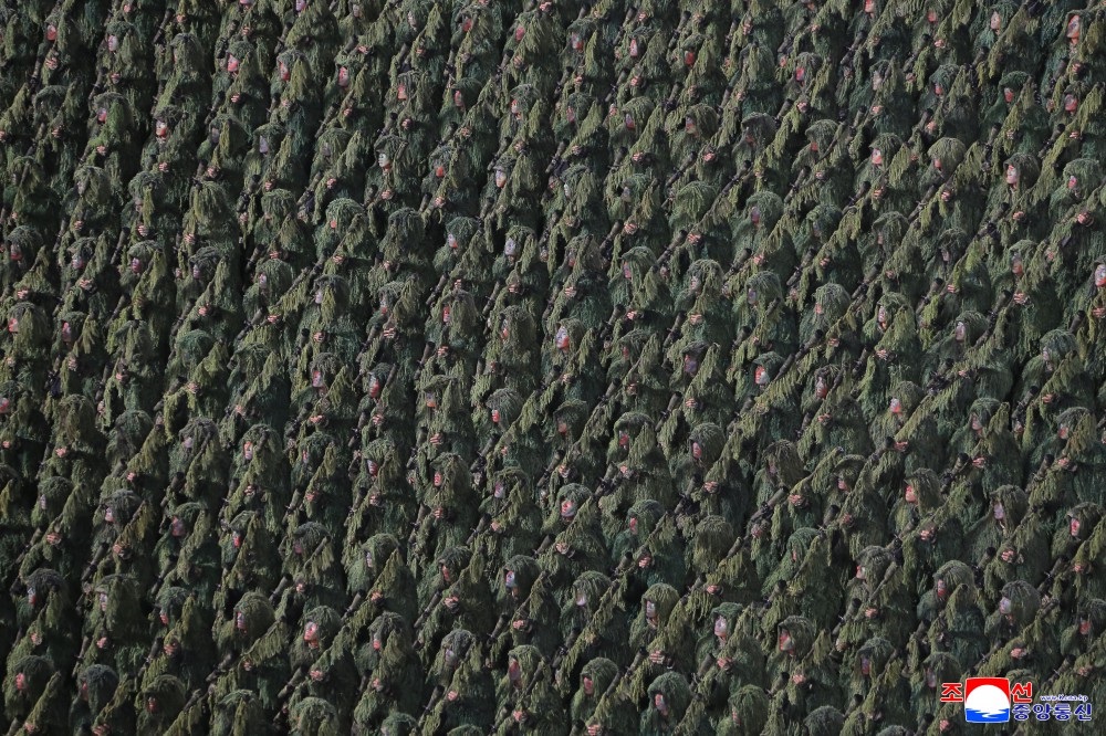 На військовому параді Кім виступив із промовою, в якій висловив "теплу підтримку" північнокорейським військам, які беруть участь у зарубіжних операціях, додавши, що героїзм північнокорейських військових буде помітно не тільки під час оборони Північної Кореї, а й на "форпостах соціалістичного будівництва".