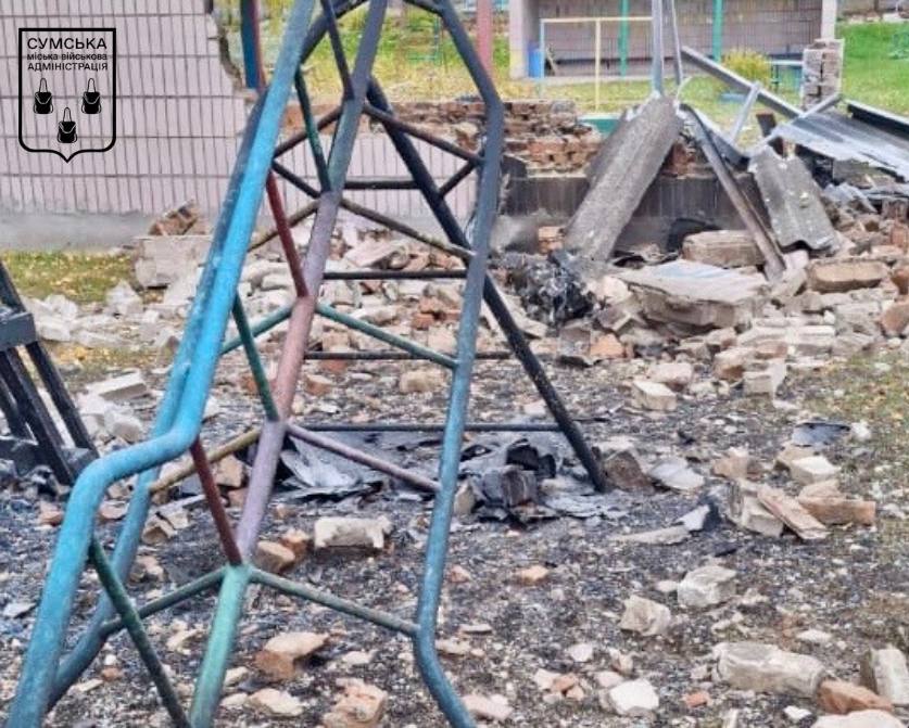 У Сумській міській військовій адміністрації додали, що одне з влучень припало на дитячий садок у Колпаківському районі Сум. Є пошкодження на території.