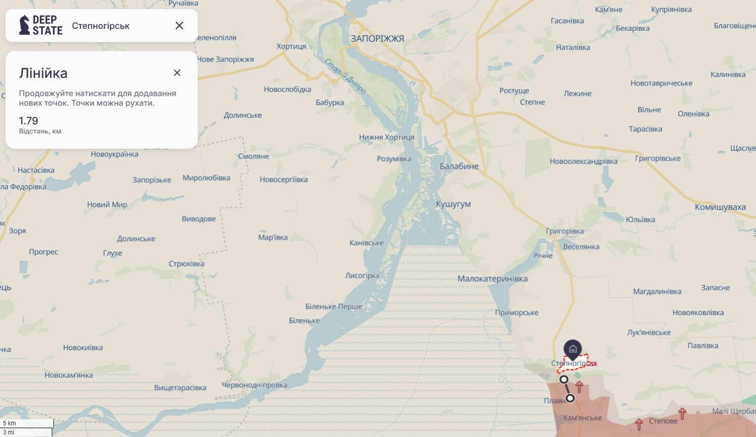 Під Запоріжжям змінилась ситуація поруч з містом Степногірськ, повідомили аналітики проєкту DeepState. Є зміни на відрізку фронту на 200 км східніше: українці звільнили частину Кучерового Яру, а росіяни змістили лінію боїв на 1–2 км поруч з Покровськом та Добропіллям.