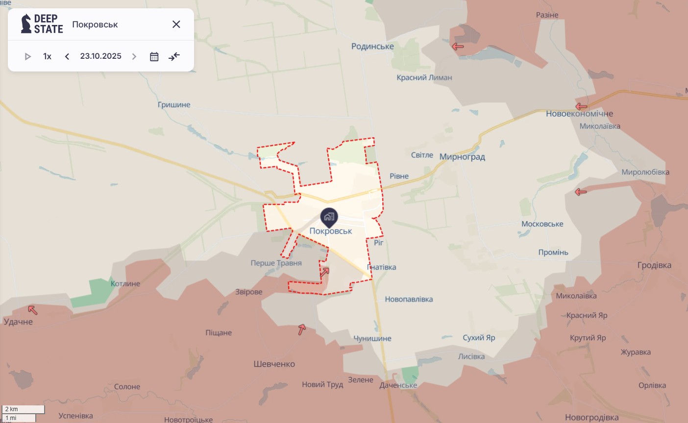 Зазначимо, 21 жовтня з'явилась публікація німецького воєнного оглядача Юліана Рьопке. За його оцінками, незабаром має початись остання битва за Покровськ, оскільки ЗС РФ вже проникли в центр міста і до залізничної станції.