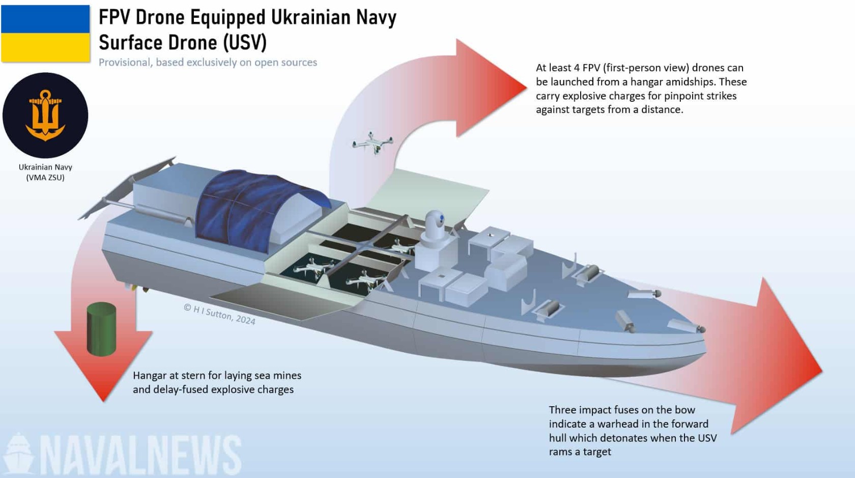 Тоді аналітик HI Sutton припустив, що це експериментальна модель безпілотника-носія FPV-дронів, зображення якої він опублікував. Можливо, нинішня атака проведена модернізованою версією того ж типу.