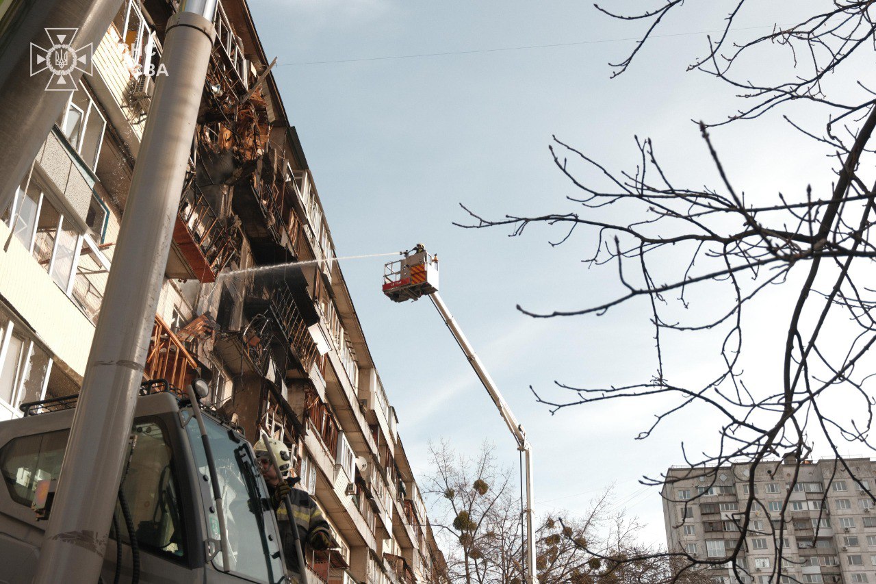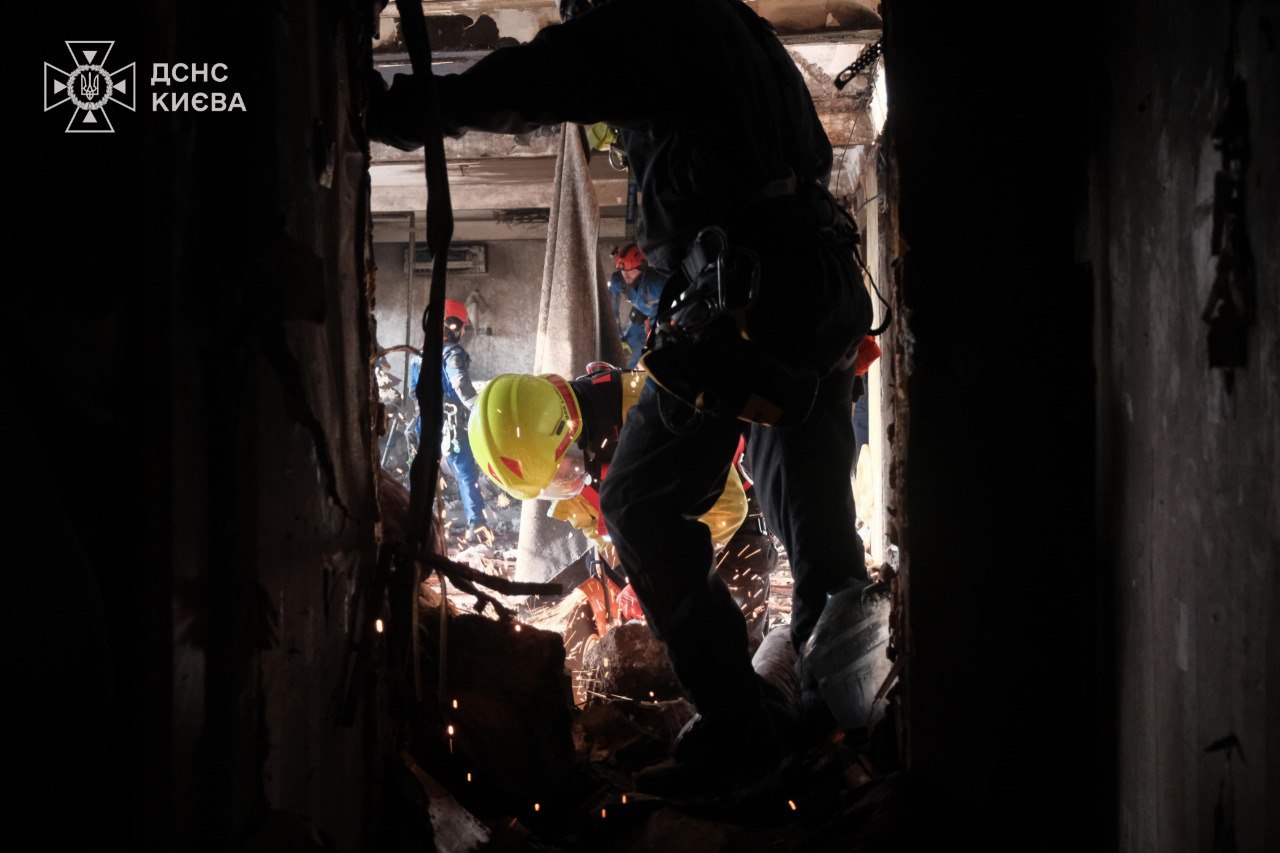 В Державній службі України з надзвичайних ситуацій розповіли, що від атаки російського безпілотника на дев'ятиповерхівку в Деснянському районі Києва постраждали п'ятеро людей. Врятовано 17 осіб, серед яких одна дитина. Під завалами ще можуть лишатися люди, триває пошуково-рятувальна операція.