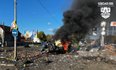 "На місці спалахнула пожежа. Знищено два авто, ще 13 пошкоджено. Виникли пожежі. Також пошкоджено споруди, розташовані поруч", — розповіли рятувальники.