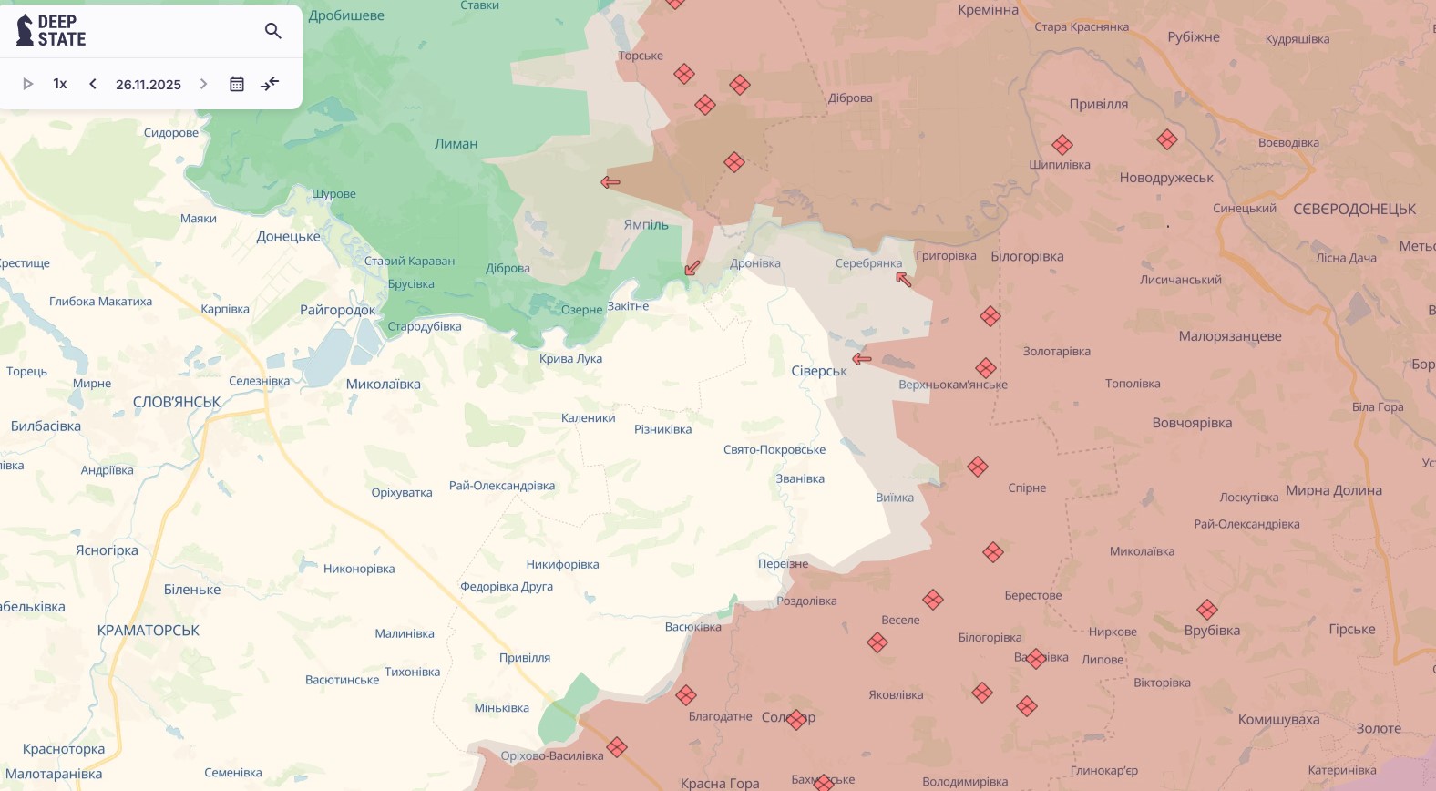 Згідно з картографічними даними, противник завдав удару в бік Сіверська з боку Верхньокам'янського 23 листопада, водночас частину населеного пункту одразу було позначено у вигляді "сірої зони".