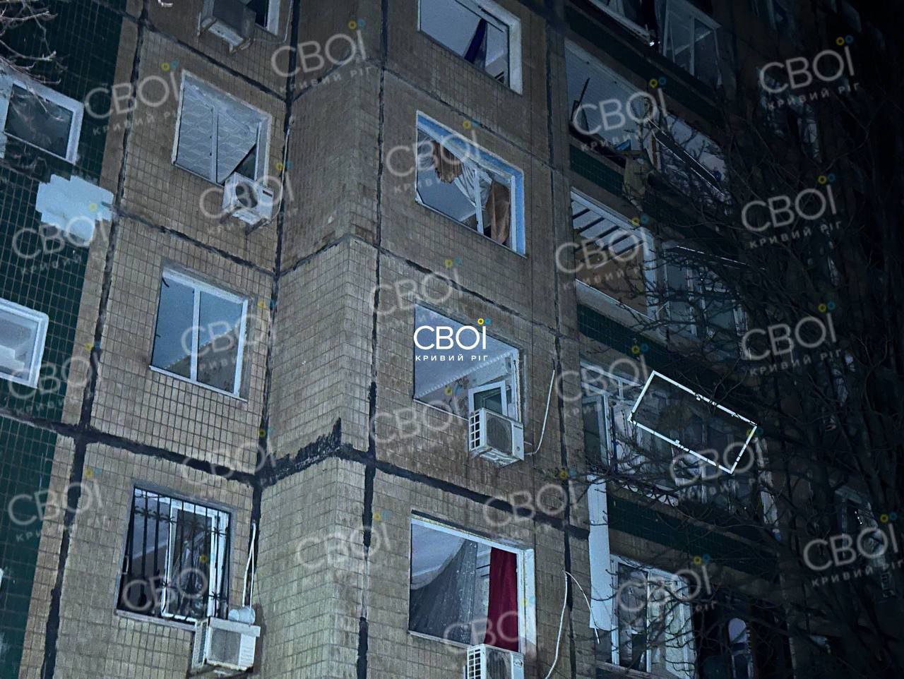 У місцевих пабліках жителі Кривого Рогу публікують результати прильоту: вирва, вибите скло, зруйнована будівля.