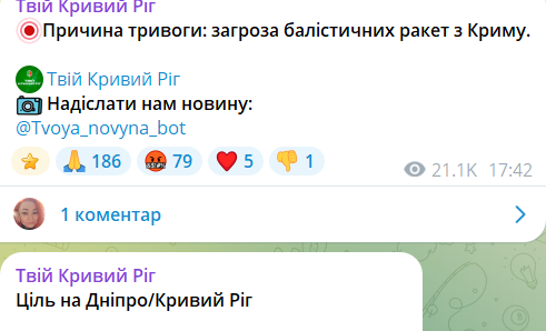 Також повідомлялося, що ЗС РФ вдарили по Кривому Рогу КАБами.