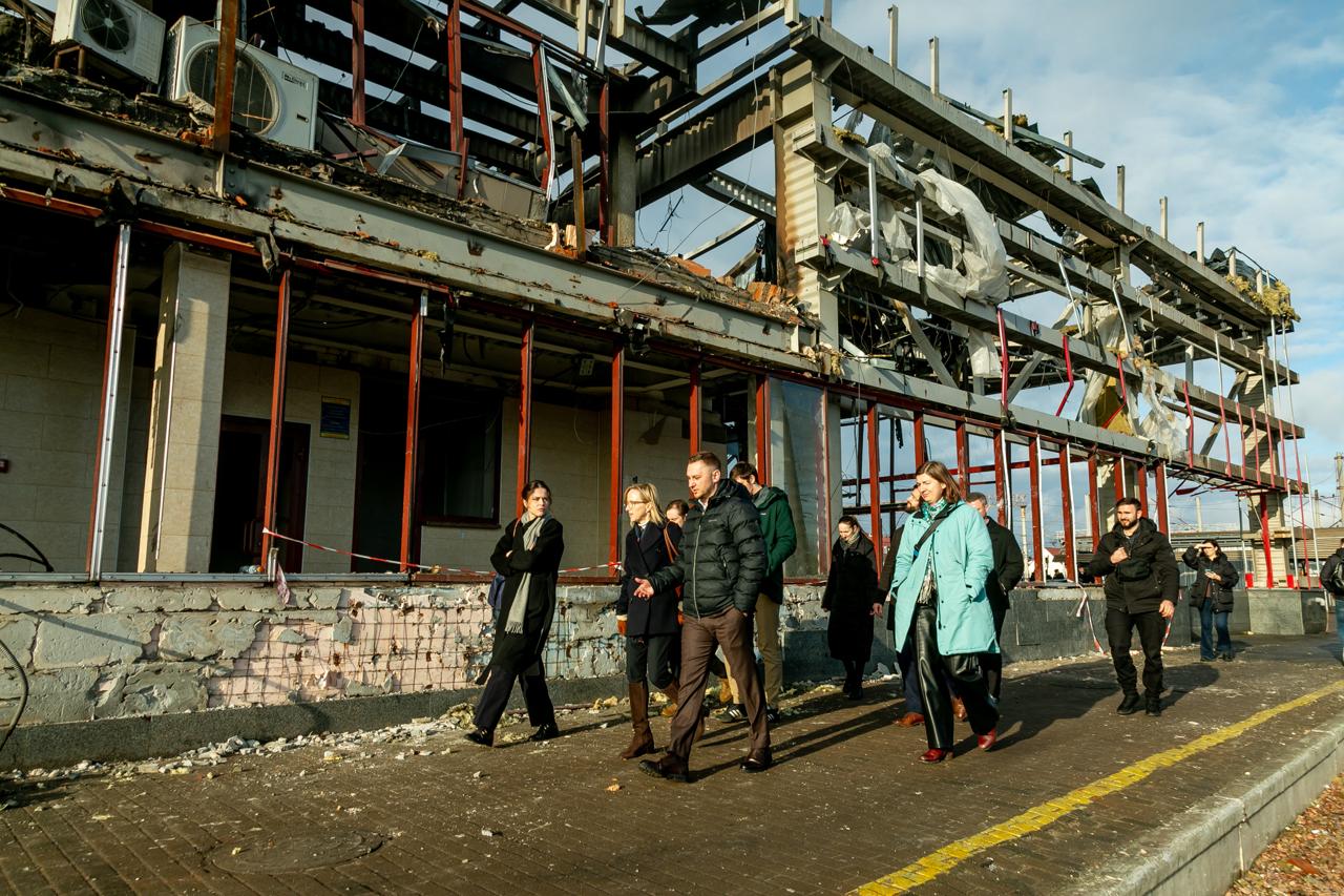 Заступник міністра розвитку громад та територій України Олексій Балеста показав дипломатам зі США, Німеччини, Франції та Швейцарії вокзал у Фастові, який вночі на 6 грудня опинився під ударом ЗС РФ. Ворог цілеспрямовано знищив об’єкт цивільної інфраструктури — депо приміських електропоїздів.