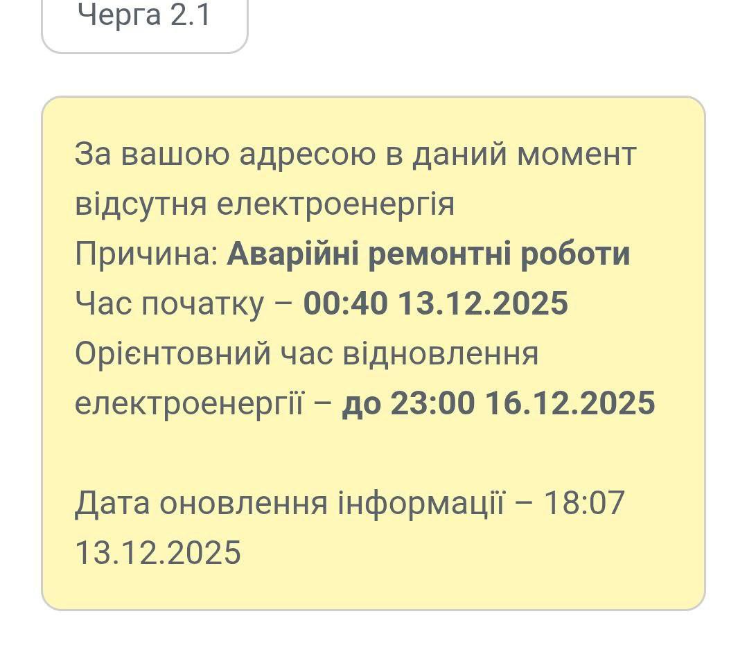 Утім, у деяких районах Одеси світло буде відсутнє до вівторка 16 грудня. Тривають аварійні ремонтні роботи, повідомляють місцеві канали з посиланням на інформацію від енергетиків.