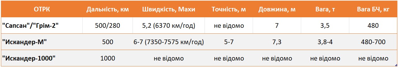 Інфографіка з характеристиками ОТРК "Сапсан" та "Искандер-М"