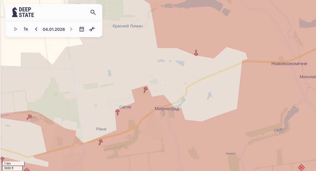 Станом на 4 січня відомо, що у Мирнограді продовжуються важкі бої. Про це повідомляв керівник Центру протидії дезінформації та лейтенант Андрій Коваленко, додавши, що ЗС РФ також не взяли під контроль Родинське, Покровськ та Гуляйполе.
