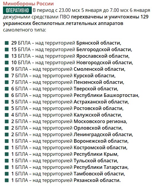 Українське командування поки не підтверджувало атаку на 100 арсенал ГРАУ у Неї Костромської області РФ. Тим часом російське Міноборони зранку 6 січня відзвітувало, що вночі відбило атаку 129 ударних дронів, з них лише один — над Костромською областю.