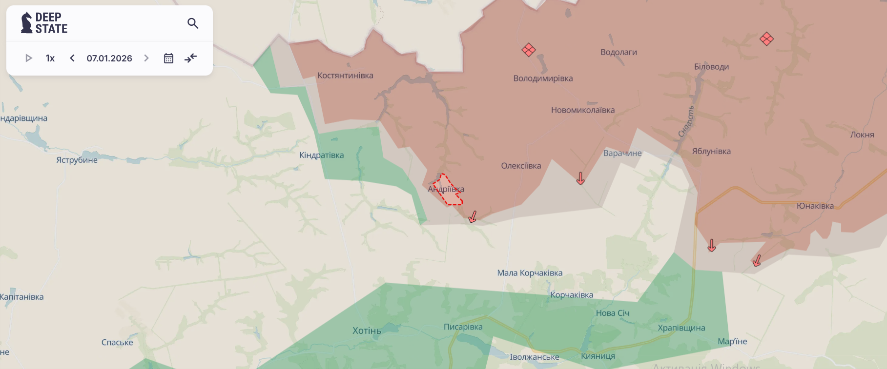 Аналітики також внесли зміни до мапи бойових дій. Села Новомаркове та Андріївка тепер перебувають у червоній зоні, що означає, що контроль над цими населеним пунктами перейшов до окупантів.