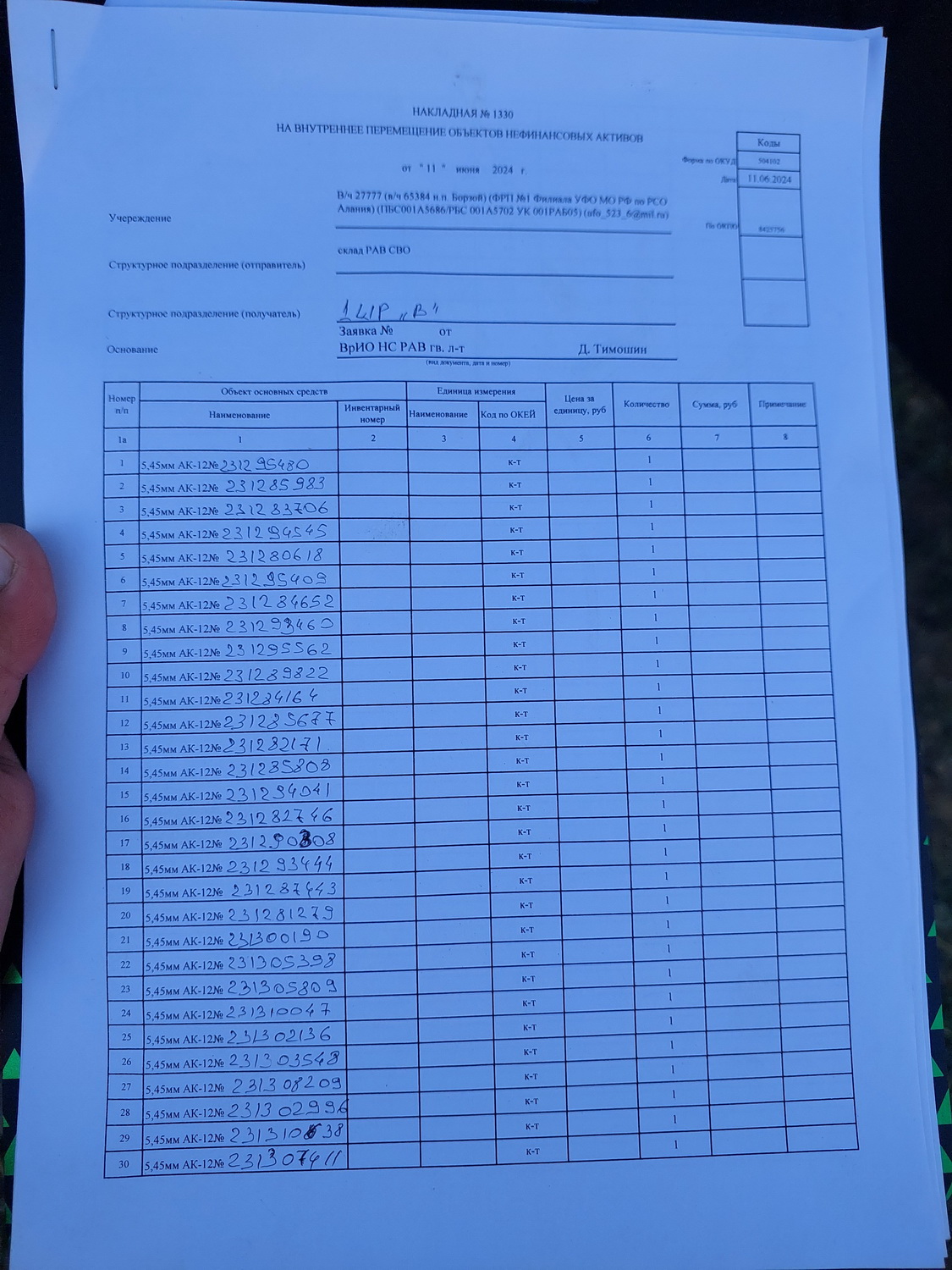 Фото фрагмента звіту про зброю взводу Євгена Дмітрієва