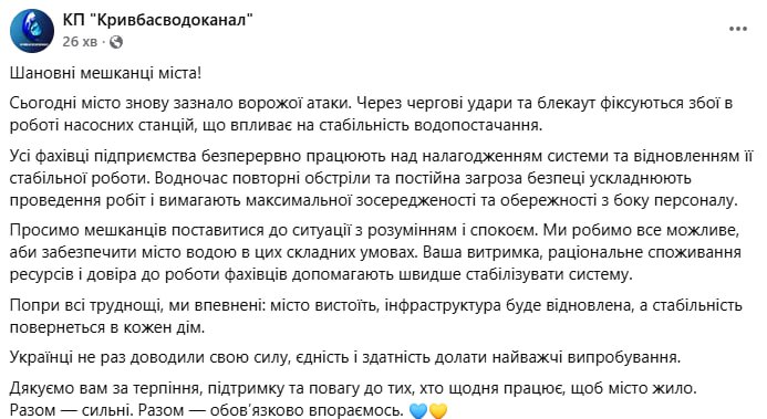"Усі фахівці підприємства безперервно працюють над налагодженням системи та відновленням її стабільної роботи. Водночас, повторні обстріли та постійна загроза безпеці ускладнюють проведення робіт і вимагають максимальної зосередженості та обережності з боку персоналу", — підкреслили на підприємстві.