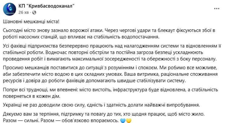 Також у будинках мешканців міста фіксують стрибки напруги та проблеми з водопостачанням. У КП "Кривбасводоканал" звернулися до абонентів, повідомивши, що через чергові удари та блекаути фіксуються збої в роботі насосних станцій, що впливає на стабільність водопостачання.