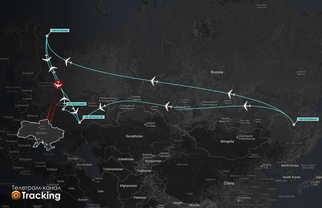 Як повідомляє моніторинговий канал Tracking, для атаки було задіяно п’ять бортів стратегічних бомбардувальників Ту-95МС з Далекого Сходу, які виконали переліт на авіабази "Оленья" та "Енгельс-2", а також один борт з авіабази "Оленья".