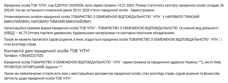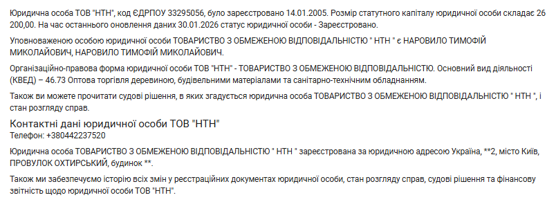 Розмір статутного капіталу "НТН" — 26 200,00 грн, а дохід за 2024 рік — 355 тис. грн.