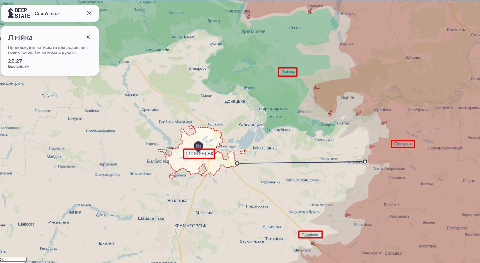 Командування ЗС РФ має певні успіхи під Лиманом — містом, розташованим на північ від Слов'янська. Відстань між населеними пунктами та водна перешкода не дозволяє росіянам просунутись далі, ідеться у звіті Інституту вивчення війни (ISW). Атака на залишки Донецької області, підконтрольні Україні, також можливі зі сходу. Втім, на обох відтинках ЗС РФ не мають ресурсів, тому їм доведеться припинити тиск під Покровськом та Гуляйполем, щоб виконати наказ Кремля до встановлених термінів.