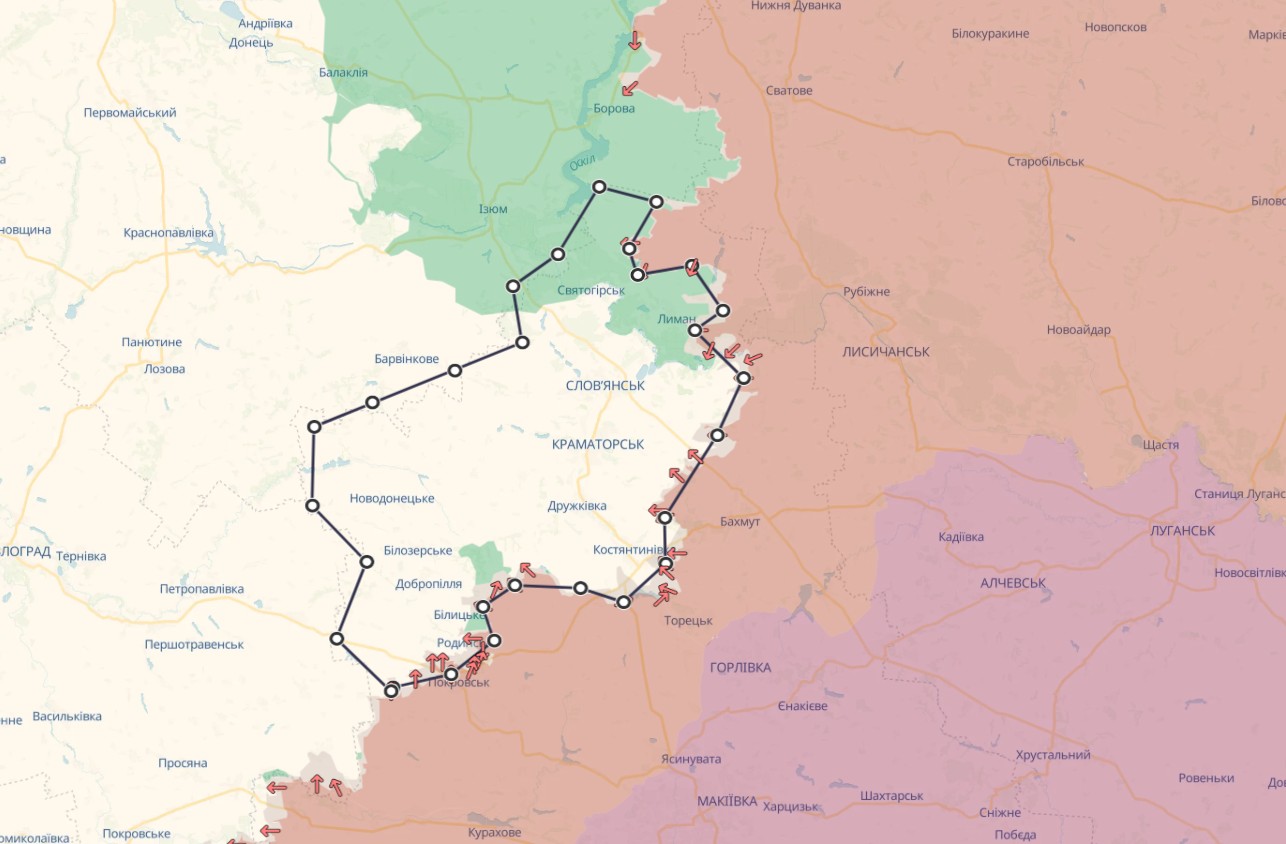 Карта частини Донецької області, не окупованої ЗС РФ, 6 лютого