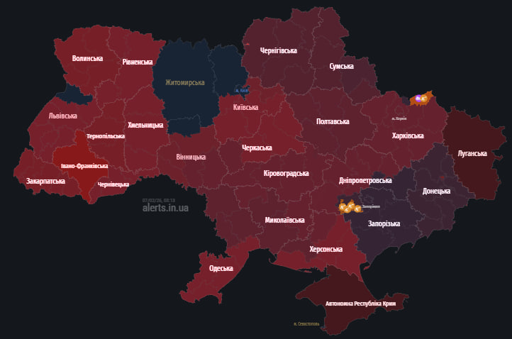 Уночі 7 лютого росіяни здійснили пуски крилатих ракет типу "Калібр" з Чорного моря. Повітряна тривога через ракетну небезпеку поширилася практично по всій Україні. Вибухи пролунали зокрема на Івано-Франківщині та у Вінниці.