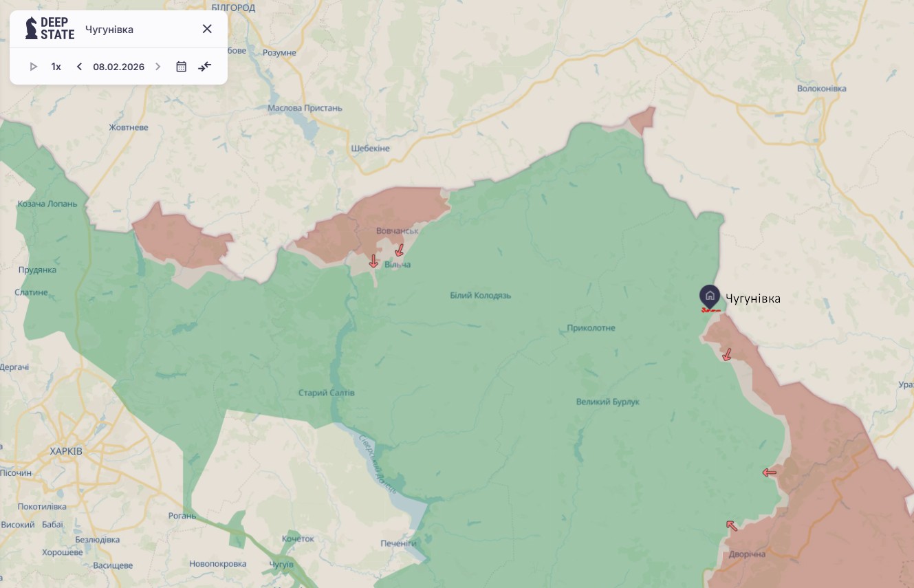 Генштаб ЗСУ зранку 9 лютого повідомив, що ЗС РФ на Харківському напрямку провели вісім штурмів. При цьому більшість російських атак відбулась біля Вовчанська, але є також спроби прорватись з плацдарму на північ від Куп'янська.