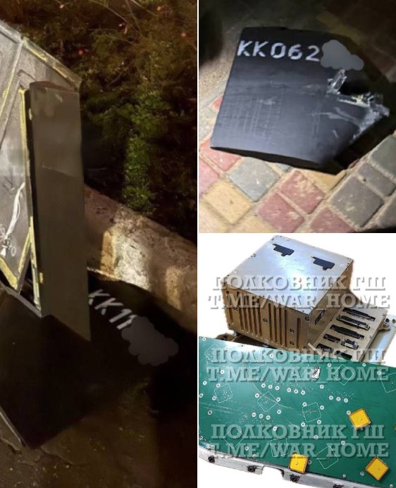 У каналі опублікували фото уламків, на яких добре видно компонент з надписом та плату з антенами.