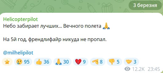 Перша інформація про інцидент з вертольотом з'явилась у мережі о 23:45 3 березня. Автор допису підтвердив, що стався "дружній вогонь" та зауважив, що такі події стаються на п'ятий рік війни з Україною.