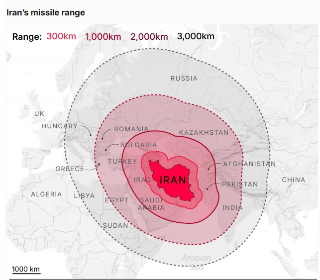 Водночас, щоб безпілотник або ракета досягли Європи, їм довелося б перетнути повітряний простір над Іраком, Сирією та Йорданією, де багато безпілотників було перехоплено на шляху до Ізраїлю.