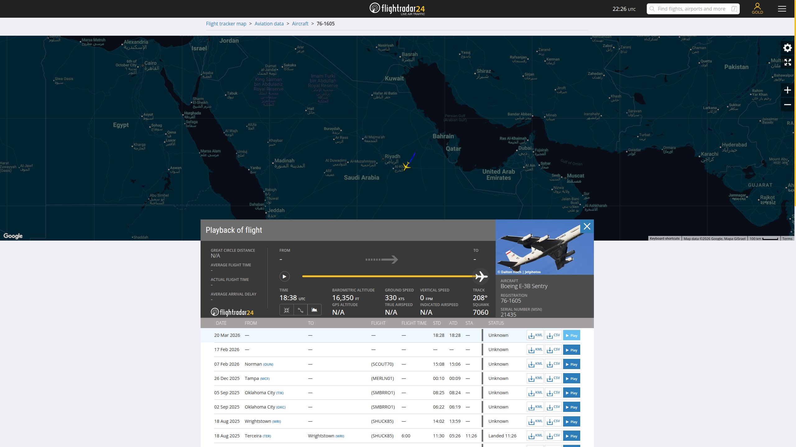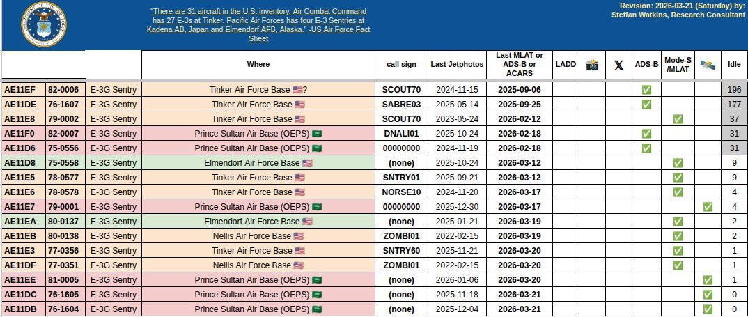 Дані показують, що знищений літак E-3G Sentry мав бортовий номер 81-0005 і був приписаний до 552-го авіакрила бази ВПС Тінкер в Оклахомі.