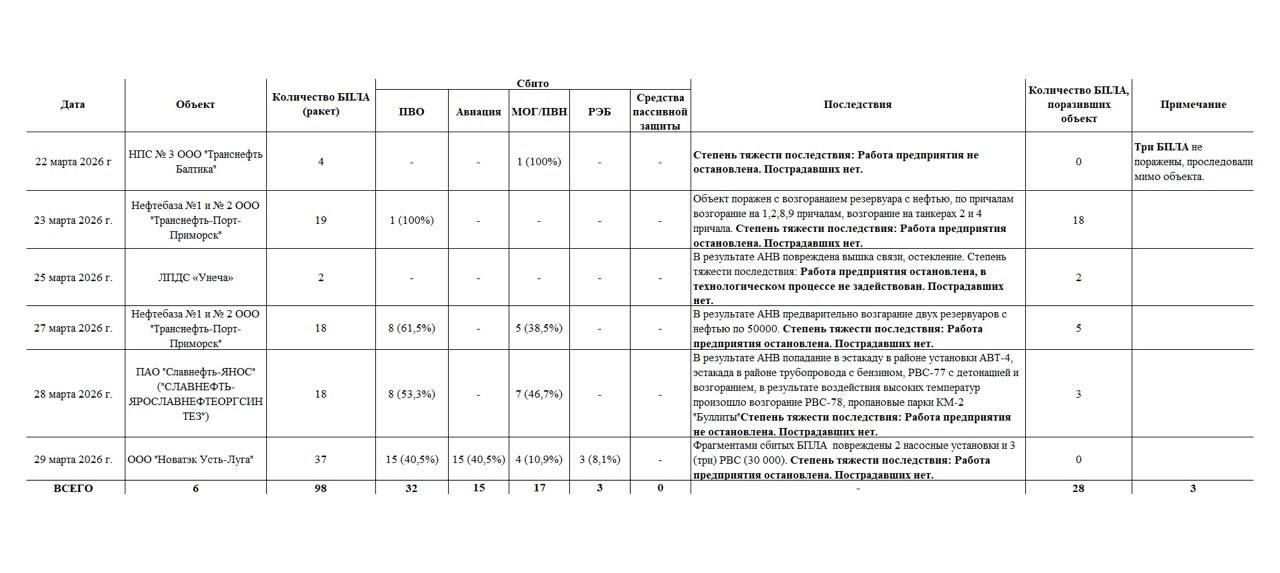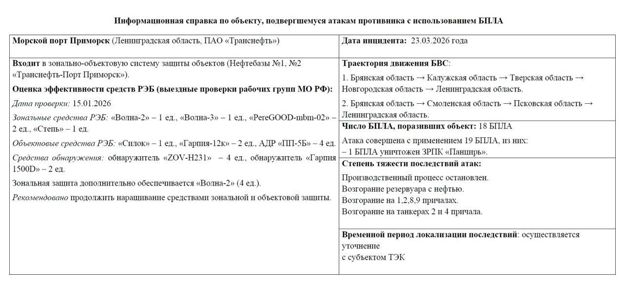 4 квітня журналіст Андрій Цаплієнко опублікував російські звіти про результат українських ударів по портах "Приморськ" та "Усть-Луга" у період з 23 по 26 березня.