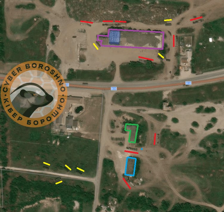 Аналітики пояснили, чому база "Рубікон" — це насправді логістичний центр ЗС РФ, який забезпечує ресурсами російську армію. По-перше, на фото за червень 2025 року на вказаному майданчику зафіксували майже півтора десятка військових машин: дев'ять тралів (червні) та сім вантажівок (жовті). По-друге, поруч іде траса М14, яка з'єднує Донецьк та Мелітополь, і цією трасою прямують військові вантажі для підрозділів ЗС РФ у Донецькій та Запорізькій областях.