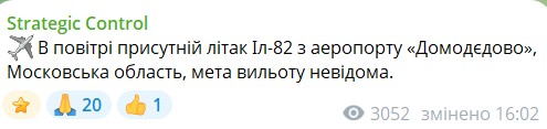 У дописі посилаються на моніторинговий канал: аналогічна інформація з'явилась у пабліку "Стратегічна авіація РФ".