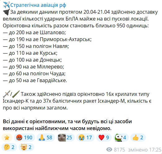 Удар по Україні — анонс нової повітряної атаки, допис 21 квітня