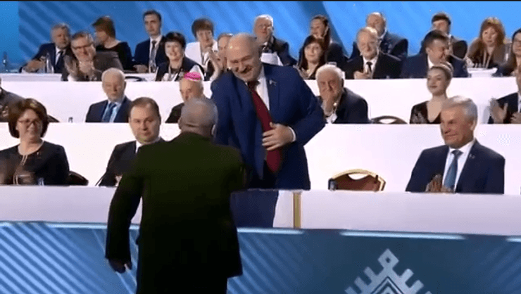 До цього полковник Кривоносов потиснув руку Лукашенку, а тепер вирішив передати "заряд енергії" підлеглим.
